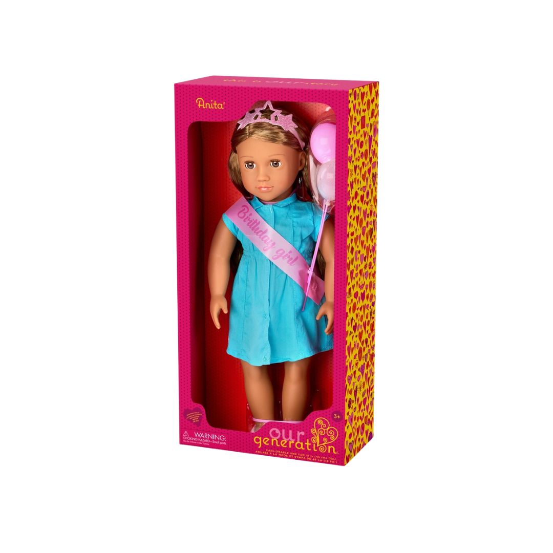- 18-inch Birthday Doll: shout surprise and get ready to shine with Our Generation doll Anita!
