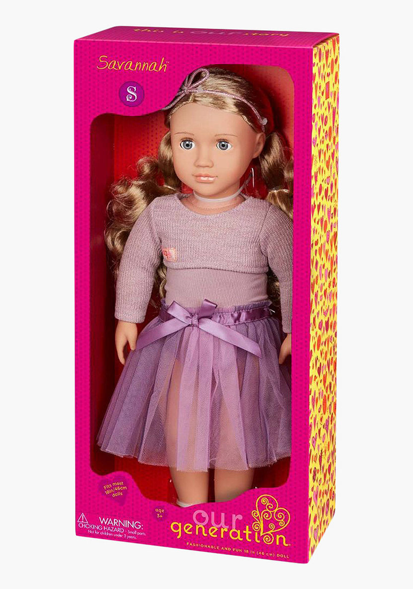 - 18-inch Doll: Meet Savannah, a ballerina doll with long, wavy blonde hair and dark-blue eyes that open and close!
