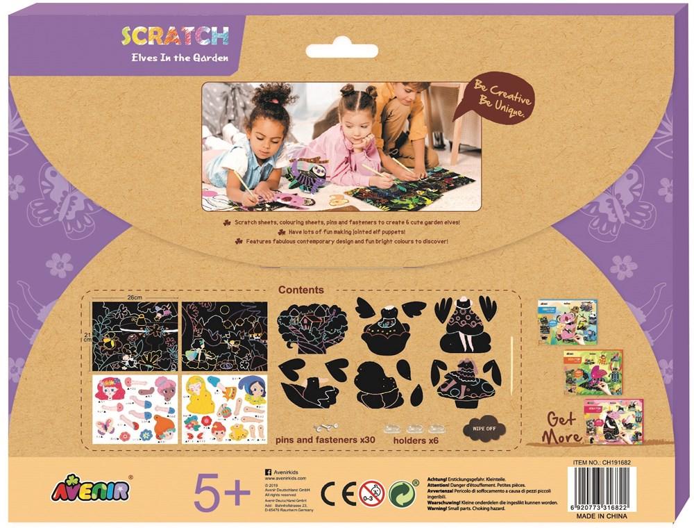 Scratch and create 6 cute jointed fairy puppets playing in the garden.